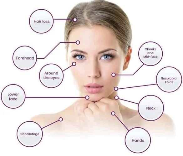 Unlike traditional PRP injections that focus on skin texture and tone, cellenis PRP is injected deeper into the skin to restore structure and volume in targeted areas, just like dermal fillers, but without synthetic materials. Common treatment areas include: